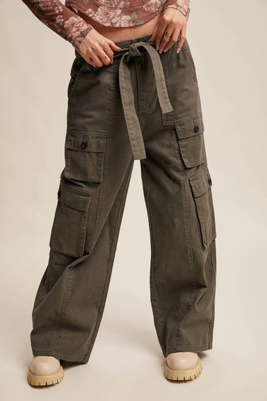 $59.95| /cotton twill fabric soft washed feel wide-leg silhouette relaxed through the leg self-tie belt multi-pocket elasticized back waistband belt loops ...