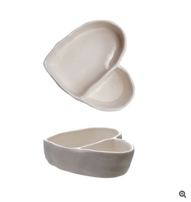 $17.95| /stoneware divided dish heart shape 5.5" great for a snack and dip