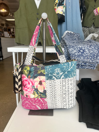 boat neck short sleeve wrap front black with white tulips 100% polyester