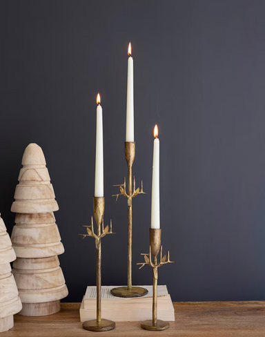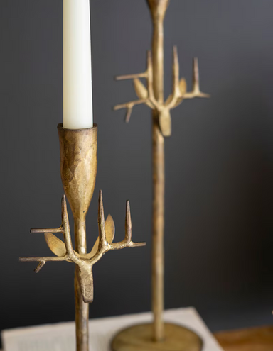 from $21.95| /forged iron antique gold finish deer taper holders Large: 3.5βd x 15.5βt Medium: 3"d x 12"t Small: 2.5"d x 9"t