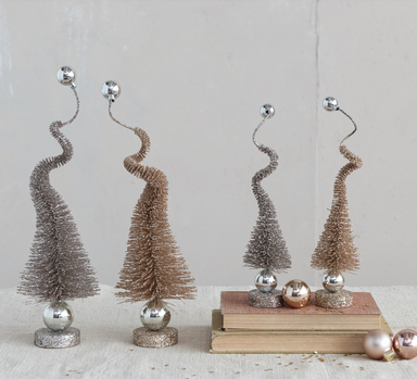 Plastic Bottle Brush Tree glitter base silver ball tipΒ choose: gold or silver and small or large small:Β 2-1/4" Round x 9-1/4"H large: 4" Round...