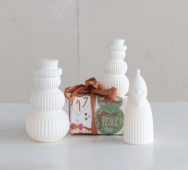 stoneware bisqueΒ snowman shaped LED light white batteries included Choose: small or large small: 3β round x 5β tall large: 4" round x 7β tall